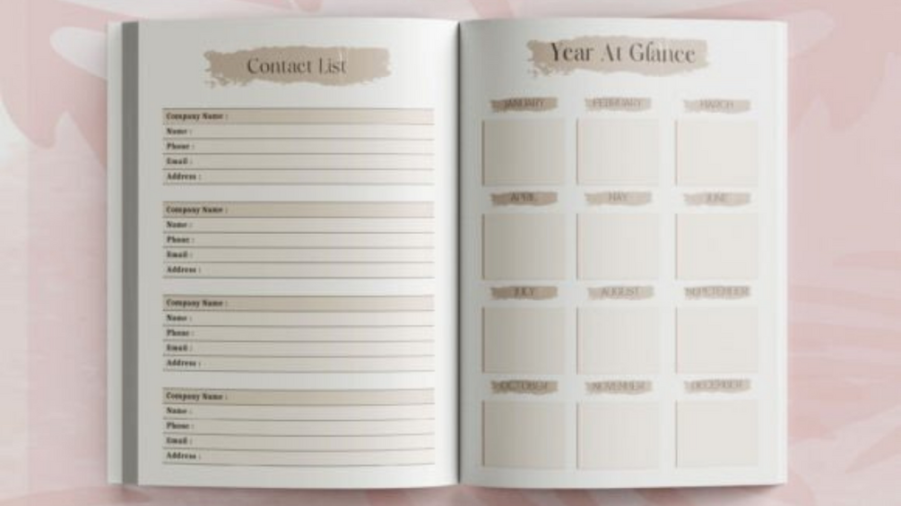 This includes 100+ Canva templates you may choose, combine, and rearrange to build your calendar, notebook, or diary. It is also designed to guide you through what is required. Without any design experience, you may modify this template by replacing the text with your own, dragging and dropping your photos as appropriate, and adjusting the colors.